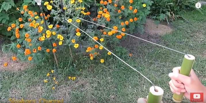 1ให้เรานำลวดทองแดง หรือลวดที่เตรียมมา เสียบลงไปในกระบอกไม้ไผ่ที่เตรียมมา