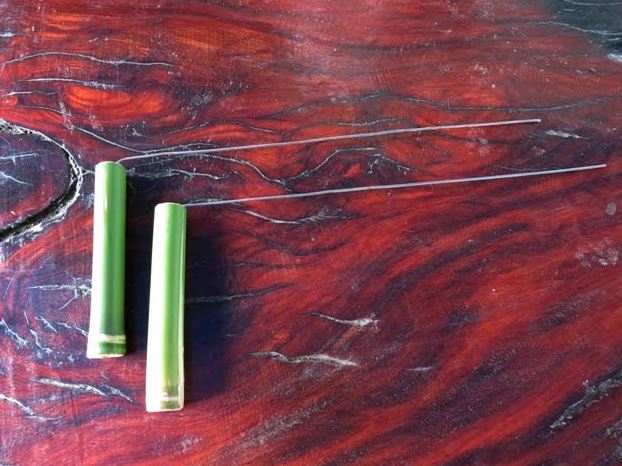 1 กระบอกไม้ไผ่ยาว 6 เซนติมเตร สำหรับทำเป็นด้าม จำนวน 2 ท่อน